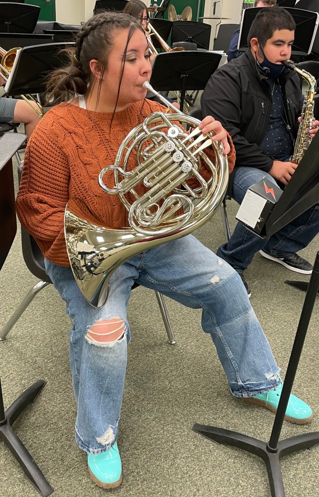 I love band because I get to play music by myself and that’s something I have always wanted to do with band I can. Band is probably like my closest thing to a fantasy because I have met many amazing friends in band and I have trouble keeping friends from other classes. When I was younger I wanted to be singer, but my audition wasn’t good enough. I still wanted to do music and when I found the band program here, I was excited to get to play! I love band a lot and I would never turn back from it!